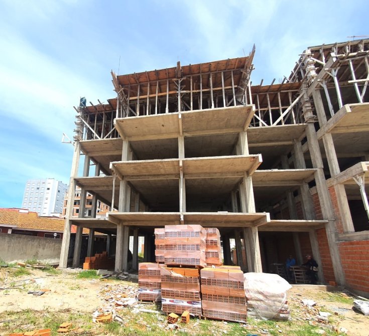 Sistema constructivo por medio de de vigas de fundación, columnas y vigas perimetrales todo en Hormigón Armado. Mampostería de ladrillos huecos .paredes interiores con revestimiento plástico de primera calidad y fina terminación exteriores con aislamiento hidrófugo y revestimiento plástico de alta resistencia.