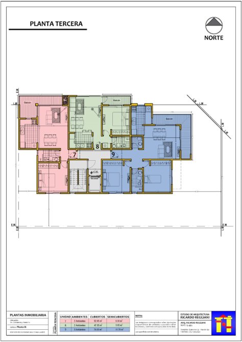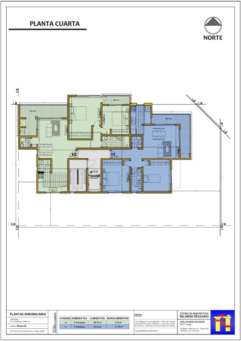 4 pisos con 3 departamentos por piso. Todas incluyen baulera en PB –