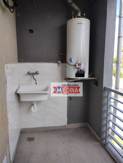 Living comedor amplio con cocina, mesada y bajo mesada, balcón con parrilla, baño completo con bañera y dormitorio con placard con divisiones.