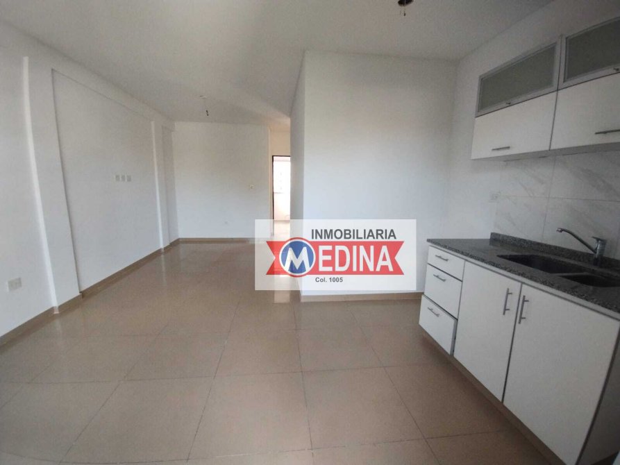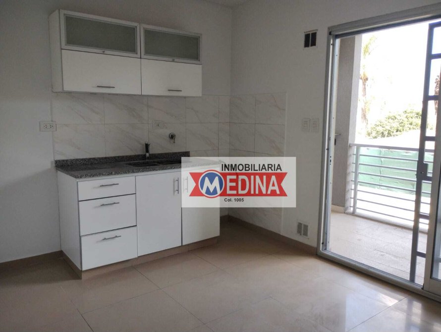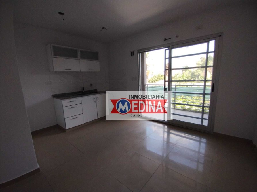 Living comedor amplio con cocina, mesada y bajo mesada, balcón con parrilla, baño completo con bañera y dormitorio con placard con divisiones.